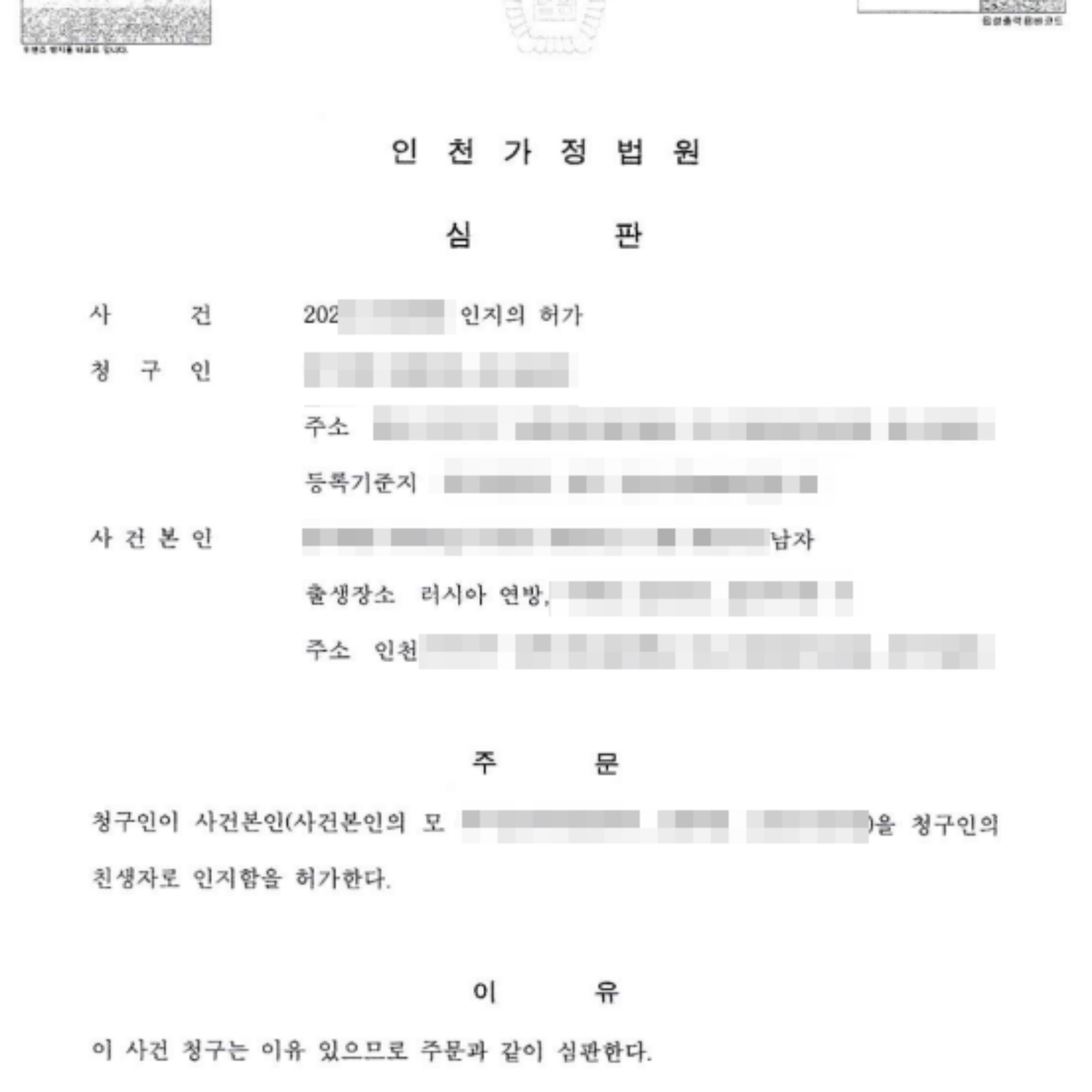 생부와 혼외자 사이의 친자관계는 인지에 의하여 법적으로 성립한다.
