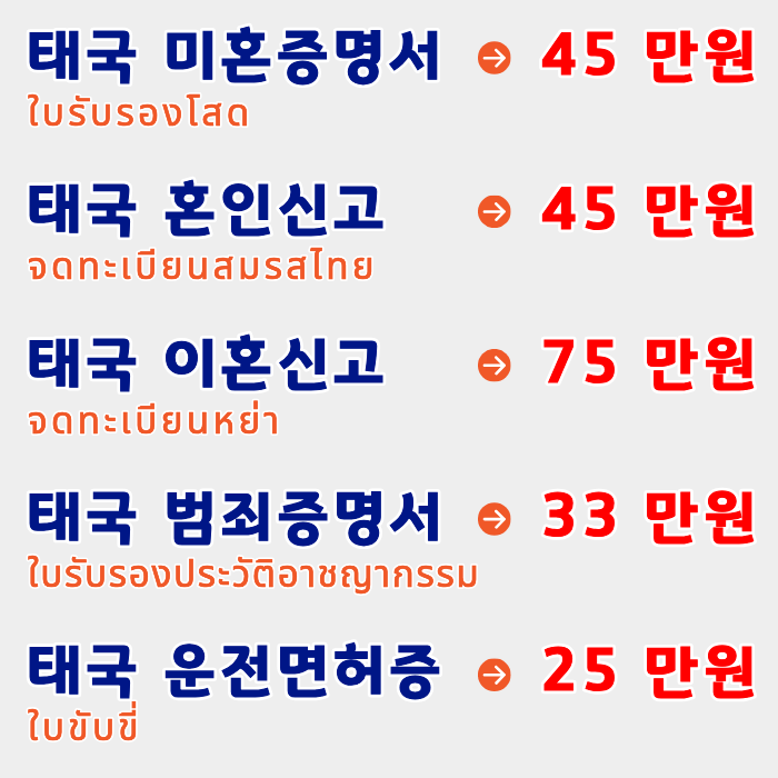 한국 혼인신고, 태국인 미혼증명서 태국 현지 발급 후 번역, 공증, 태국 외교부와 한국대사관의 영사 인증, 한국 시.구청 혼인신고 대행