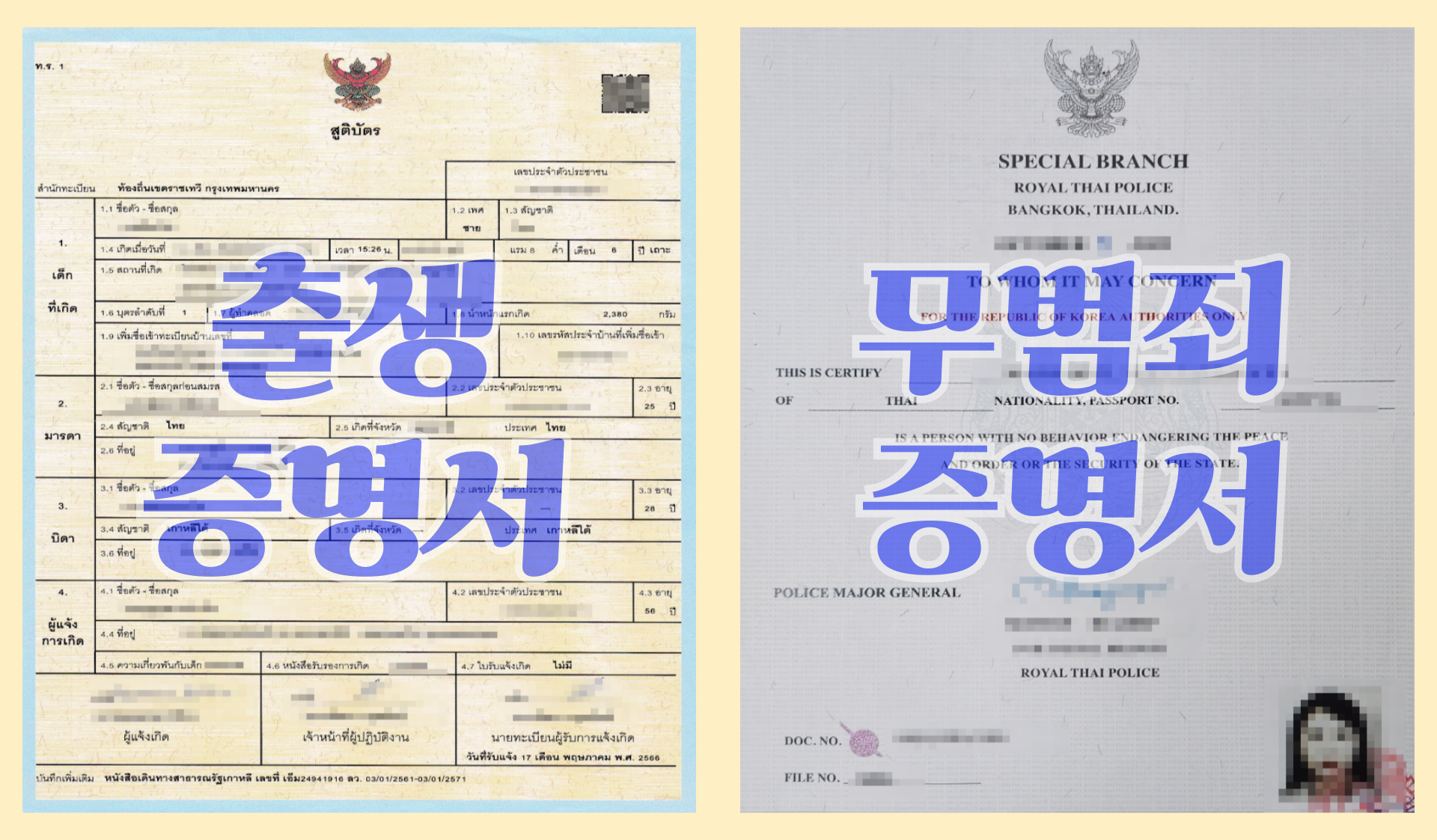 태국인의 비자 신청, 자녀 입양, 유학, 취업 등 관공서 및 유관기관 제출, 태국 현지 서류 발급 번역/공증/태국 외교부 및 한국대사관의 영사인증 서류 대행